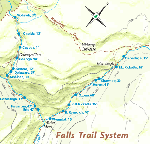 Ricketts Glen is a state park in Pennsylvania. It is a National Natural Landmark known for its old-growth forest and 24 named waterfalls. (Wikipedia).