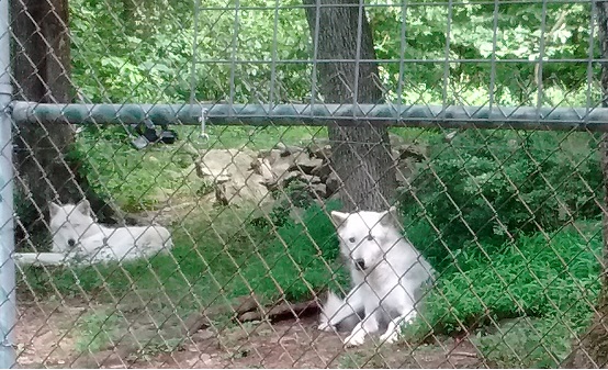 It was a really hot day. I guess that they left the shade of trees and came that close to the fence because they knew they’d get treats (their regular food is deer meat). About wolves’ eyes – I learned that real wolves (not a mixture of wolf and dog) never have blue eyes.